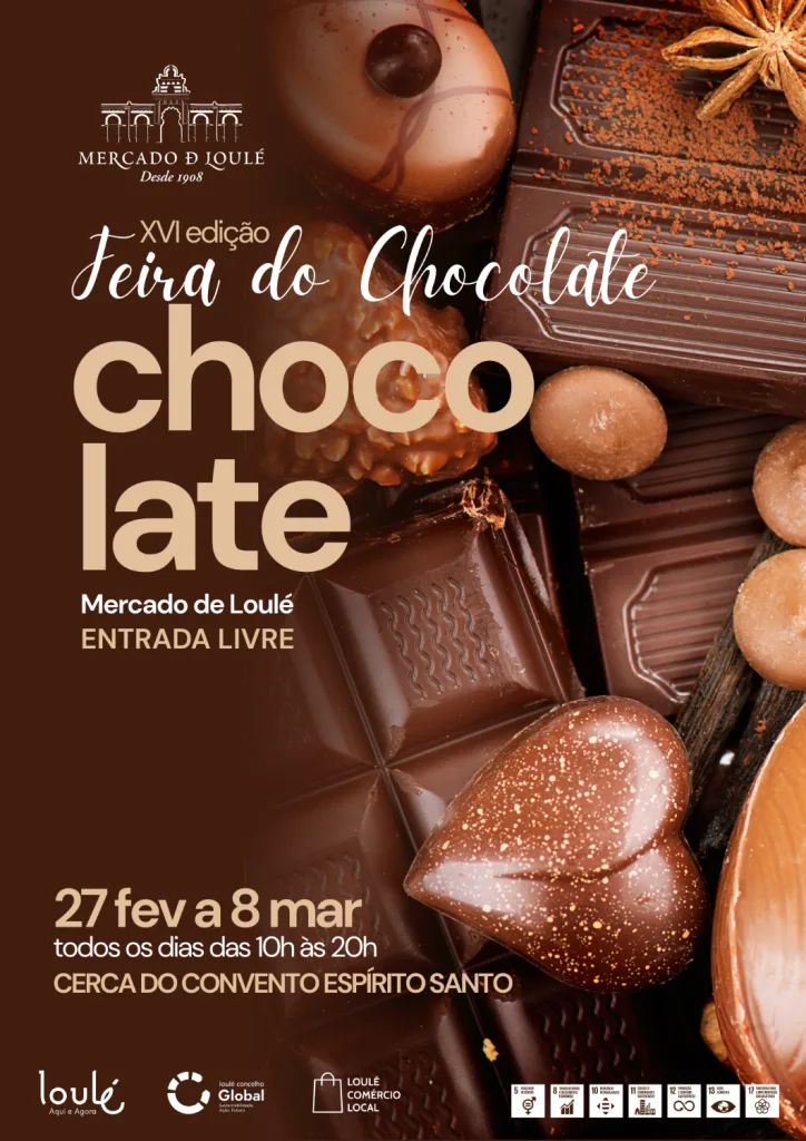 Durante 10 dias, de 27 de fevereiro a 8 de março, a Cerca do Convento do Espírito Santo, em Loulé, volta a transformar-se num verdadeiro paraíso para os amantes de chocolate, acolhendo a XVI edição da Feira do Chocolate do Mercado de Loulé. Todos os dias, entre as 10h e as 20h, o público é convidado a descobrir um universo de aromas intensos, sabores irresistíveis e criações que despertam todos os sentidos. Com 16 anos de história, esta iniciativa consolidou-se como uma referência nacional, atraindo residentes e visitantes que encontram em Loulé um espaço de encontro, convívio e descoberta em torno do chocolate, nas suas mais variadas formas: negro, de leite, branco, artesanal, quente, em bombons, bolos ou em apresentações criativas que desafiam a imaginação.