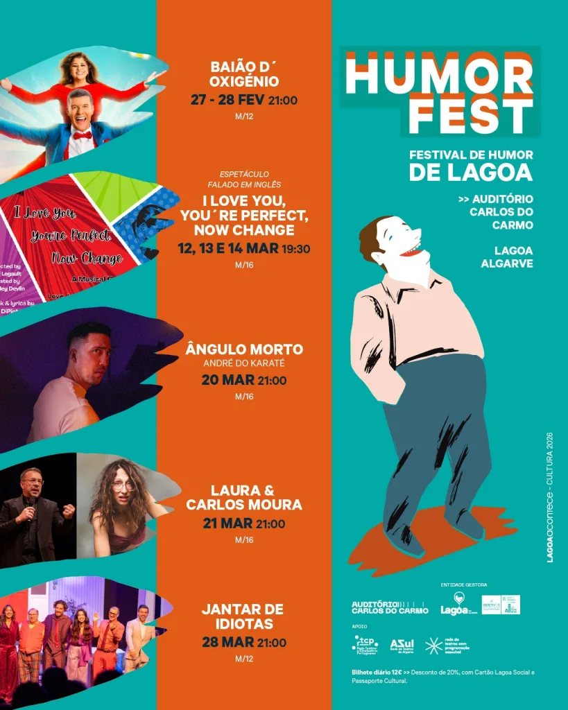 Está quase a chegar mais uma edição do HUMORFEST, Festival de Humor de Lagoa que, este ano, se realiza entre os dias 27 de fevereiro e 28 de março com 5 propostas diferentes que prometem deixar o público em lágrimas… de tanto rir!