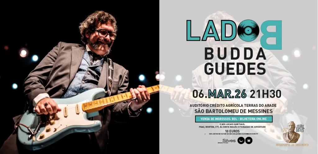 Integrado nas Comemorações do 196.º Aniversário de Nascimento do pedagogo João de Deus, o próximo Lado B vai ser especial e tem data marcada para o dia 06 de março, em São Bartolomeu de Messines. O convidado desta sessão da rúbrica é BUDDA GUEDES que sobe ao palco do auditório Francisco Vargas Mogo – Crédito Agrícola Terras do Arade, pelas 21h30. Músico, produtor, compositor, letrista e promotor cultural, Budda Guedes, traz consigo a energia única do blues, fundindo características do rock com a autenticidade do blues.
