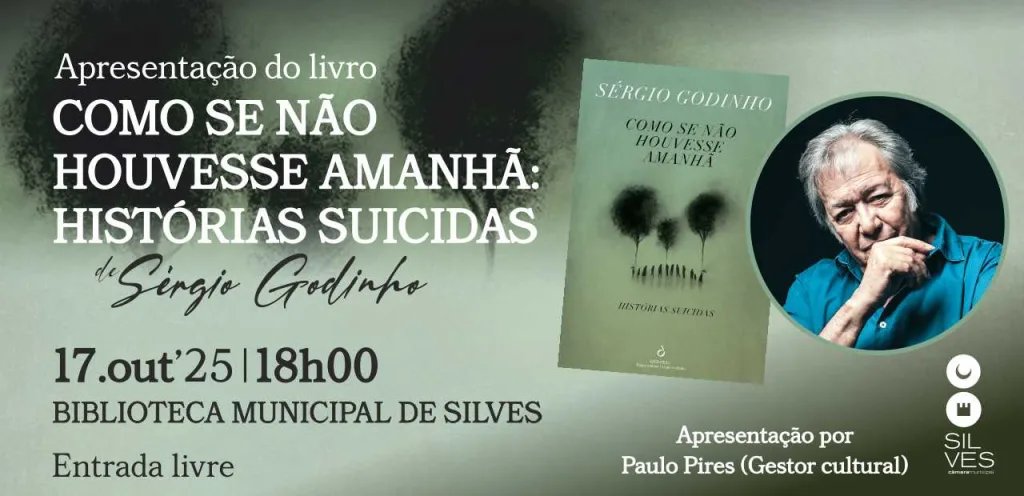 Sérgio Godinho, cantor, compositor, escritor e ator vem a Silves apresentar o seu mais recente livro “COMO SE NÃO HOUVESSE AMANHÃ: HISTÓRIAS SUICIDAS”.