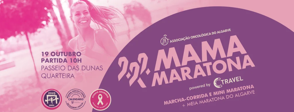 A Mamamaratona 25 realiza-se no dia 19 de outubro, com partida marcada para as 10h, no Passeio das Dunas, entre Quarteira e Vilamoura.
