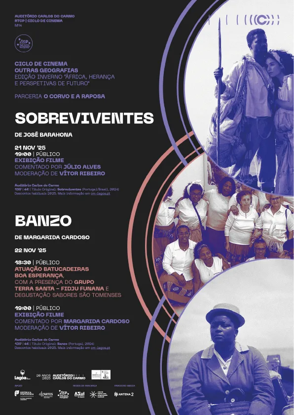 Como resultado, serão exibidos dois filmes da produção portuguesa atual: “Sobreviventes” e “Banzo”, parceria entre o Auditório Carlos do Carmo, O Corvo e a Raposa Associação Cultural.