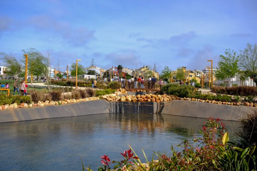 “Um exemplo de boa aplicação de fundos europeus de coesão a replicar em outros Municípios”, sublinhou José Apolinário na sua intervenção, destacando a qualidade do parque urbano e o seu enquadramento urbano. Trata-se da transformação de uma área devoluta, de cerca de 33 mil metros quadrados, num espaço multifuncional dedicado ao lazer, à prática desportiva e à valorização ambiental. O parque integra zonas verdes de elevada relevância ecológica, áreas de descanso, equipamentos de fitness ao ar livre, espaços infantis, parques de merendas e um lago central, que contribui para a promoção da biodiversidade e criação de habitats para espécies nativas.